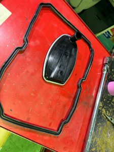 エンジンオイル漏れ、右バンクのタペットカバーより漏れが大きかったのですが、この際左側も予防整備として交換させていただきました