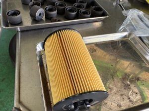 各部点検後、交換推奨部品や現状修理必要箇所などを一通りチェック、見積作成後に作業内容をお客様と打合せ~作業着工です。まずはエンジンオイル&フィルター交換