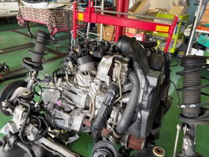 エンジンをおろす前にヘッドライトやフロントサポートなどを取外して
