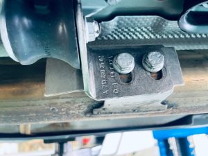 最低地上高がエギゾースト部分が低く、エギゾーストの高さを調整。