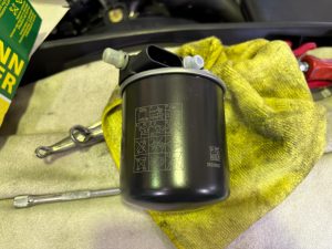 タイヤ交換で緊急にお車がご入庫したこともあり、以前にご予約いただいておりました燃料フィルターもついでに交換させていただきます。