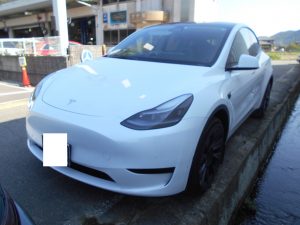 テスラモデルYフロントバンパー擦傷修理