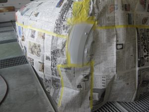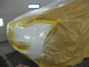フロントバンパーは取り付けたままマスキングで補修ペイント