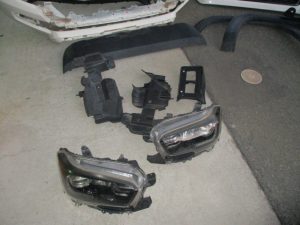 損傷はフロント部で、少し右側のダメージが大きく、右フロントフェンダーにも損傷が波及しておりました。