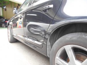 左リアドア、クォーターパネルは鈑金で修理します