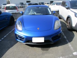 ポルシェケイマン(981)の左ヘッドライトレンズ研磨修理のご依頼です。