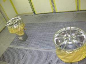 車体からロードホイールを取外してアルミホイール単体の状態にして修理
