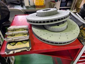 メルセデスベンツCLS220D C257左サイド事故修理及びフロントブレーキディスク&パット交換