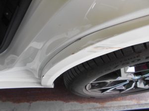 左リアドア交換、左クォーターパネル修理、アルミホイール交換の作業になります