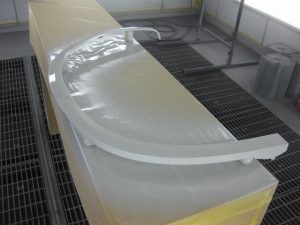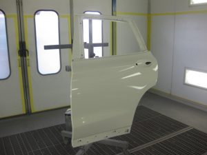新品の左リアオーバーフェンダーは未塗装ですのでボディ色に塗装します。