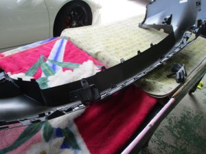 取外したバンパーを分解し、各パーツに分けます