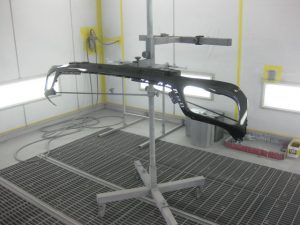 リアバンパーはボディ色に合わせて調色し塗装